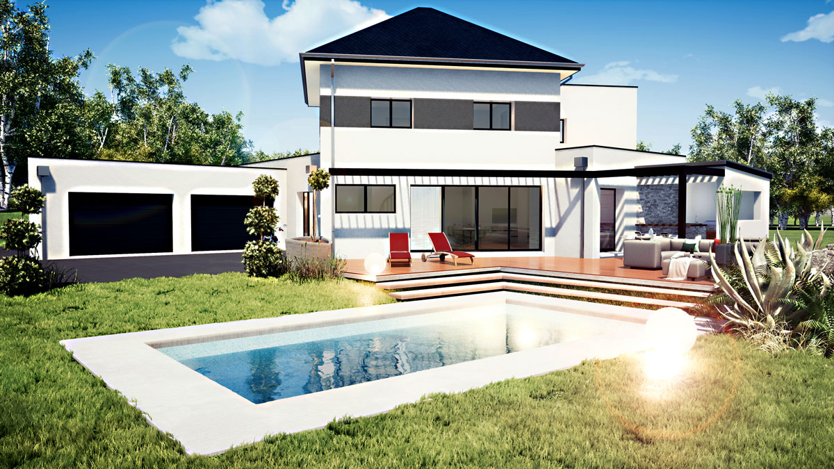 Pour ce projet d'architecture contemporaine, la maison de 180 m² a été dessinée par le pôle dessin de Numériplan puis transmise à l'architecte pour la phase de permis de construire. Le pôle graphique de Numériplan, Seenora, a pu aider les particuliers qui souhaitaient mieux se projeter dans leur projet.